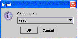 "Choose one", "Input", JOptionPane.INFORMATION_MESSAGE, null,